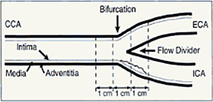 (sometimes referred to as the carotid bulb) is harder to measure, so